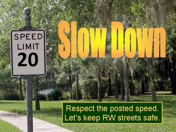 We have children, joggers, pedestrians, landscape workers, bikers, and golf carts. Share the road with care and caution. Unless otherwise posted, the speed limit is 20 mph. The speed limit is 20 mph in the Hammocks. |